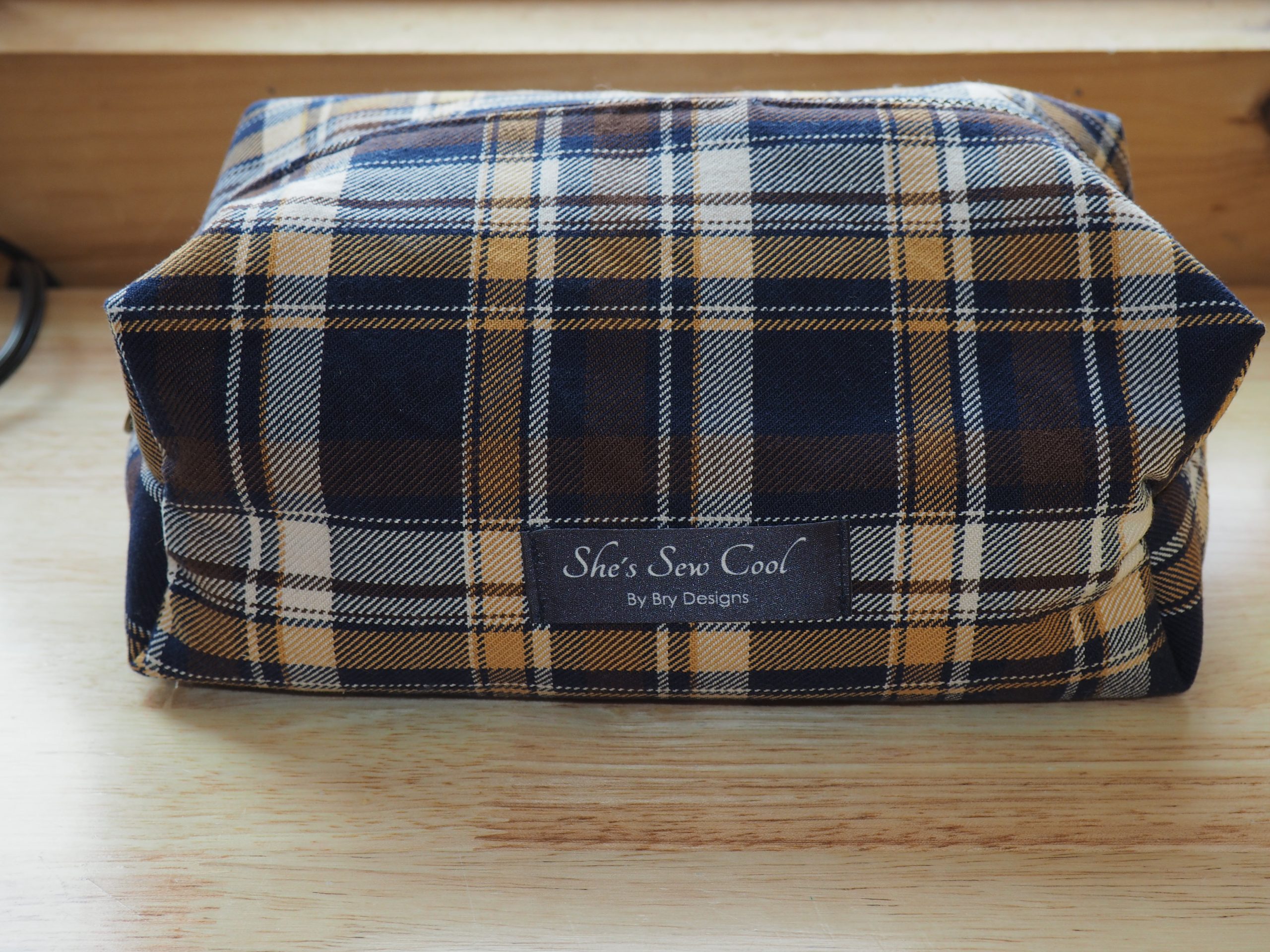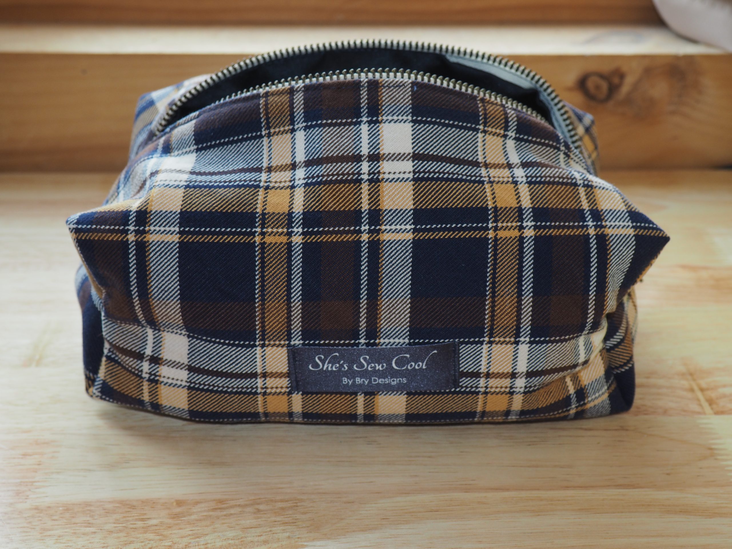 This blue and yellow plaid makeup bag is very classy and lined with a beautiful blue satin.
