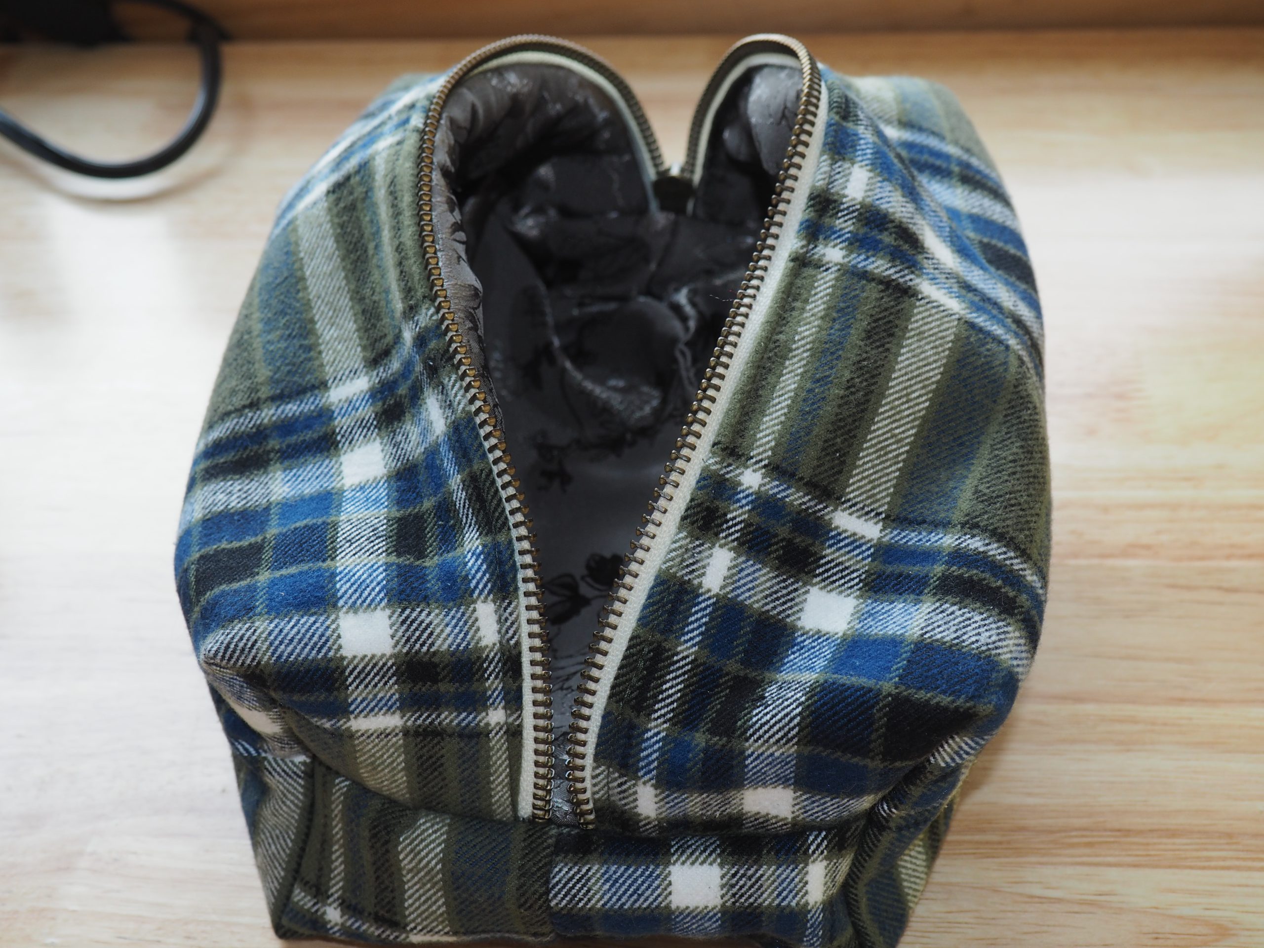 This green plaid makeup bag is soft to touch and lined with a beautiful silky green jacquard.